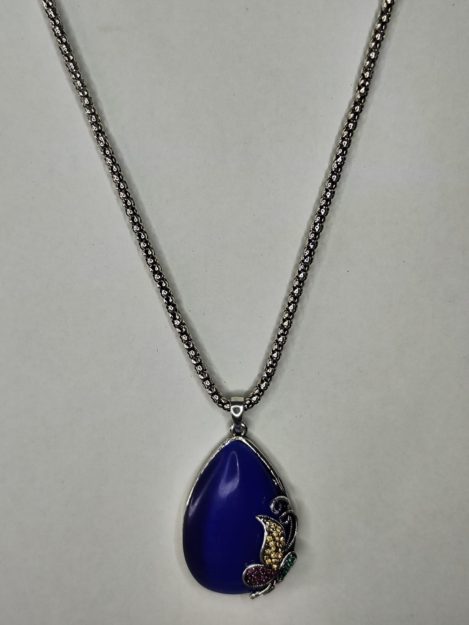 Collar con piedra azu - plateado
